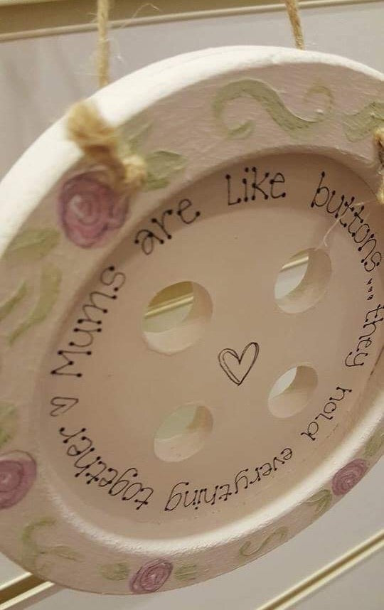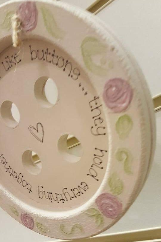 Our personalised buttons are a big hit being a great personalised gift for many occasions. This particular one has been decorated with a pretty floral border