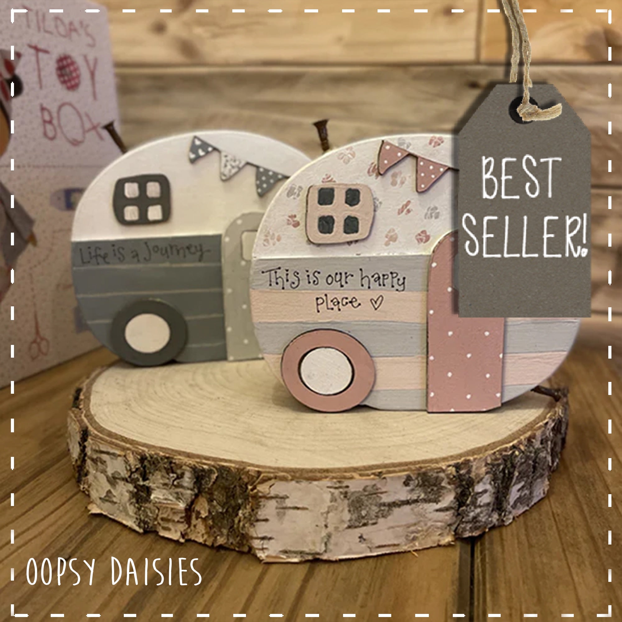 These caravan blocks, bring a little fun and sunshine and make the perfect gift for so many occasions....friendship, Valentines, birthday, Mother's Day, Father's Day or simply to look incredibly cute on your own shelf! They are all individually handmade from start to finsh decorated with little wooden windows, door, bunting and wheel to give a 3D effect and finished with little screws to the top and the side to mimic an aerial and leg, all with a lot of time, love and attention going into them just to make them extra special. And what's more.... they can have your own little message written on the front (the photos show an example of what this looks like - please see instruction below).