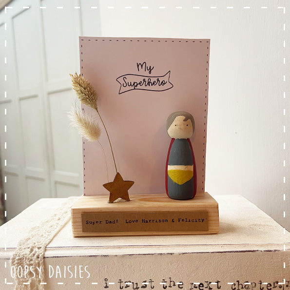This one has a back card with the wording "My Superhero" with our superhero peg doll making it a lovely gift for Birthday and Father's Day.