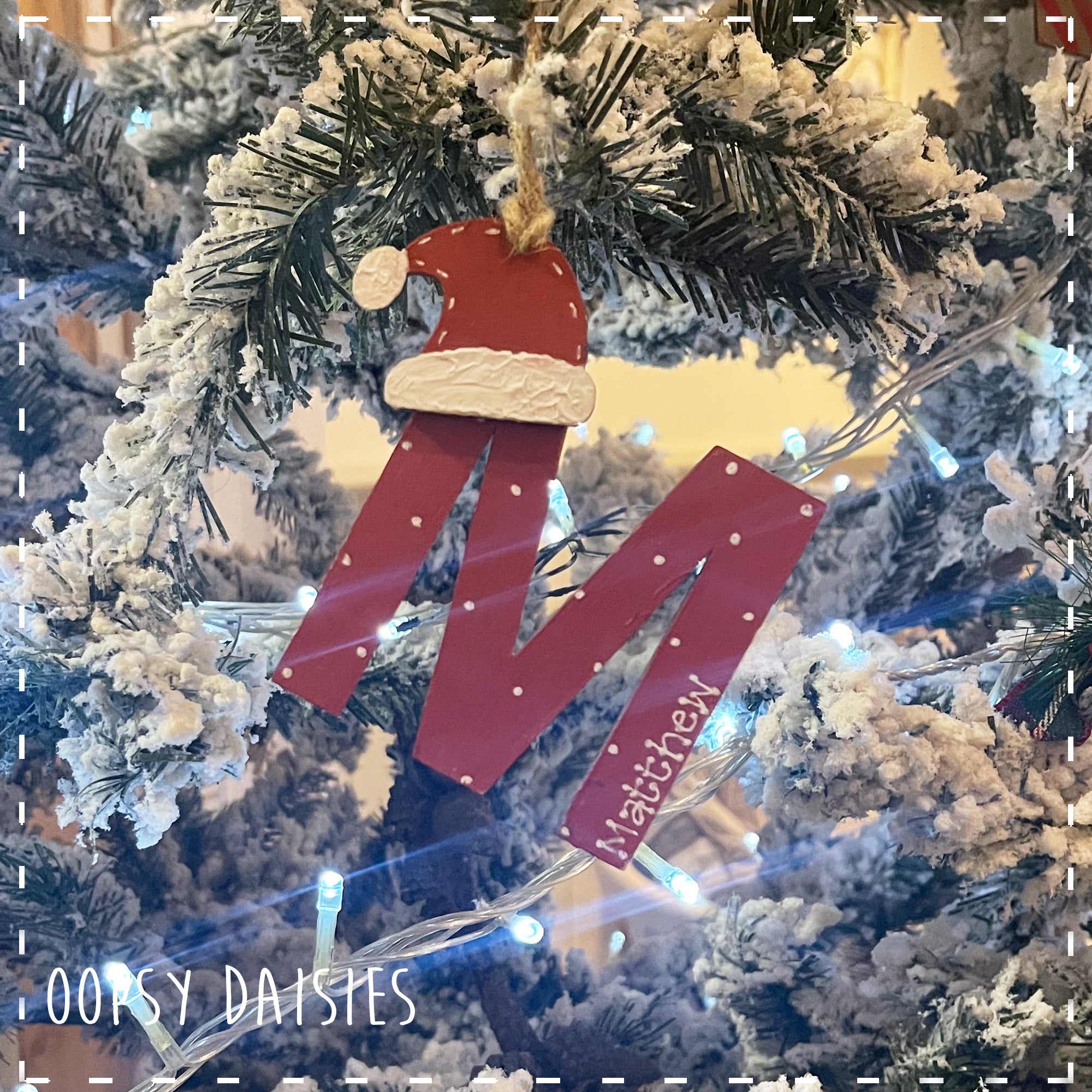 Personalise your Christmas tree this Christmas with this cute letters. Painted in a traditional Christmas red with white polka dots and a little red Santa hat. We can personalise it with a name on the letter to make it extra special.