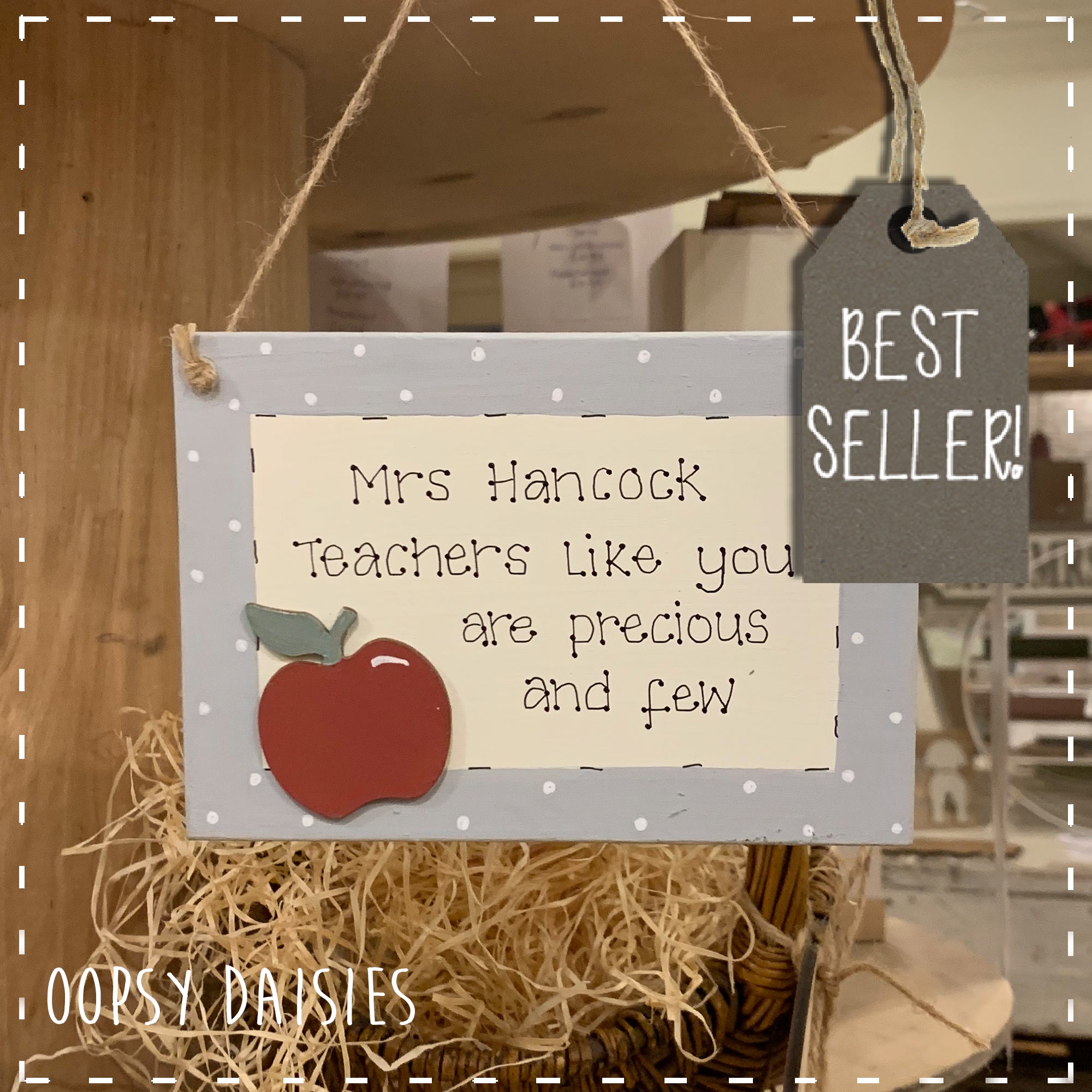 Our handmade personalised plaques make for very special and unique gifts. With a small wooden apple it makes for the perfect Teacher gift.