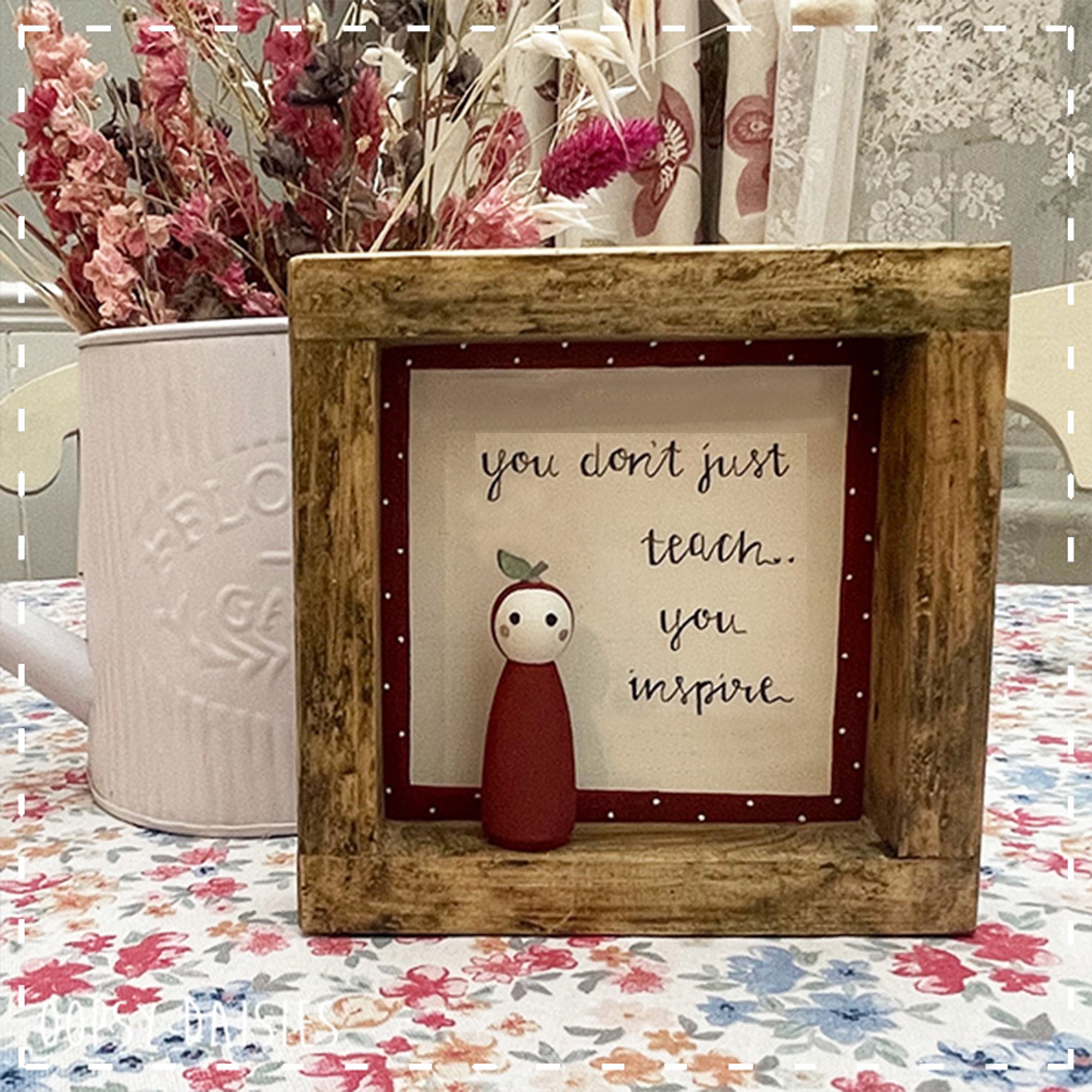 This frame is a definite Daisy favourite and our Peg Doll range has proven t be popular!! It has been designed especially for teachers & teaching assistants with one of our adorable peg dolls painted as an apple and a lovely quote "You don't just teach you inspire"