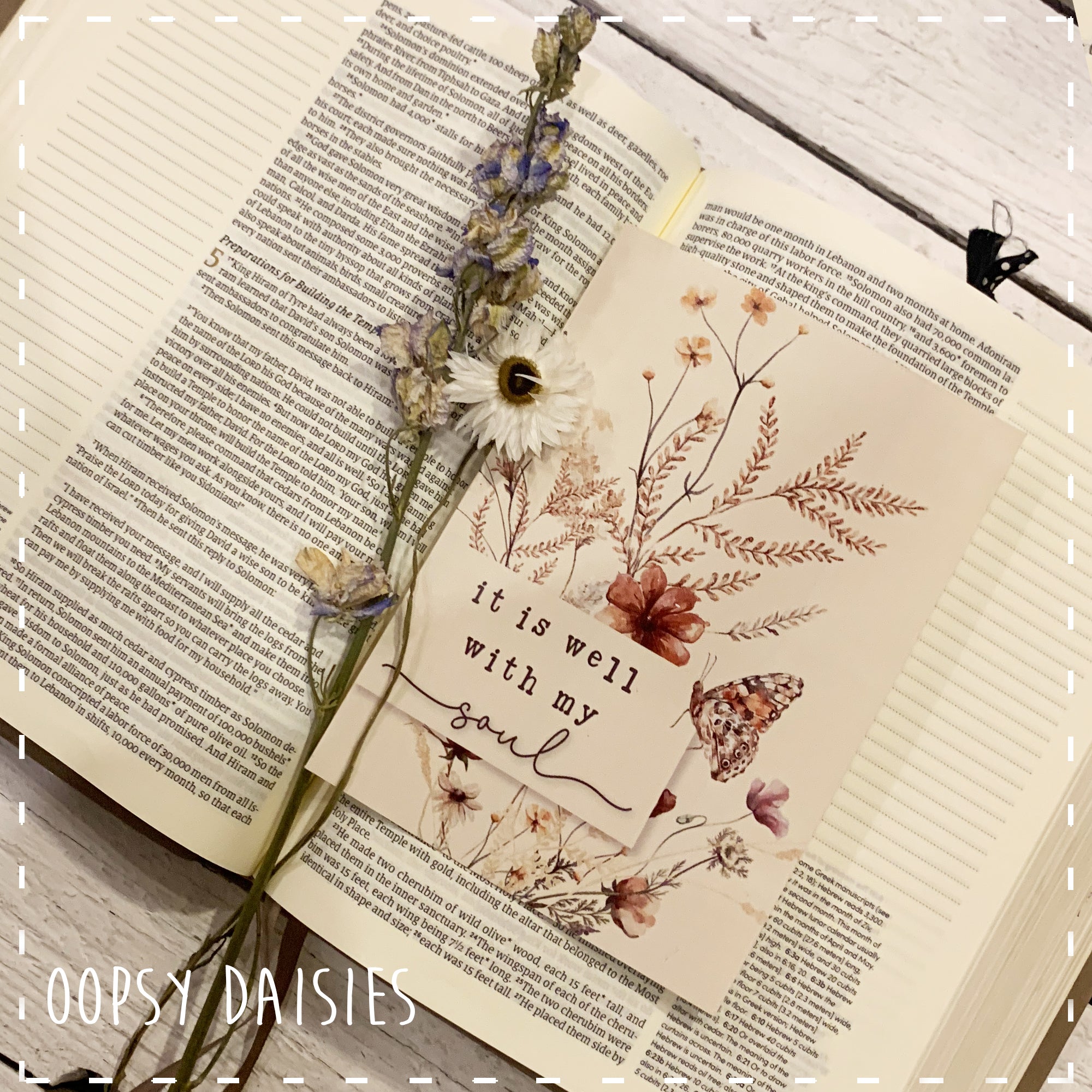 This design definitely turned out even better than I pictured!  A lovely warm cream backround with a watercolour flower and butterfly design.  There is a box overlayed over the flowers with the wording "It is well with my soul".  A really beautiful card to use practically or mounted in a frame suiting a special gift or a treat for yourself.